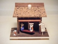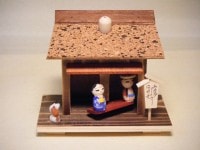 晴れの日は女人形が、雨の日は男人形が小屋の外に出てきます。